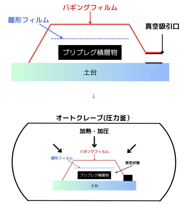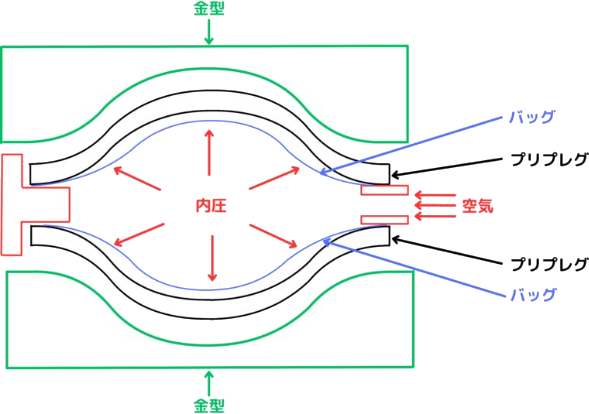 - オートクレーブ内で全体(360°)から加圧されるため、高品質な成型物が得られる