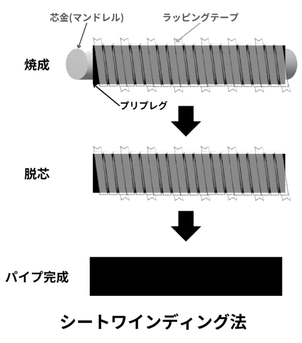 成形の方法としては芯金(マンドレル)を使用することなど、シートワインディング法と似ている部分があります。